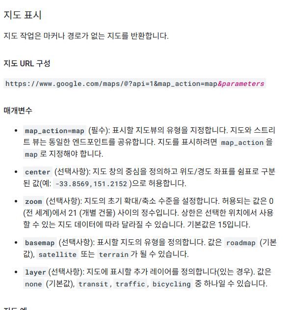 구글 맵 매개변수