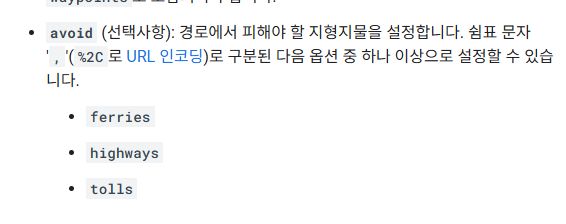 dirflg=h "고속도로 회피" 경로 찾기 모드를 켭니다. " http://mapki.com/wiki/Google_Map_Parameters " http://alvarestech.com/temp/routeconverter/RouteConverter/navigation-formats/src/main/doc/googlemaps/Google_Map_Parameters.htm 에서 가져옴