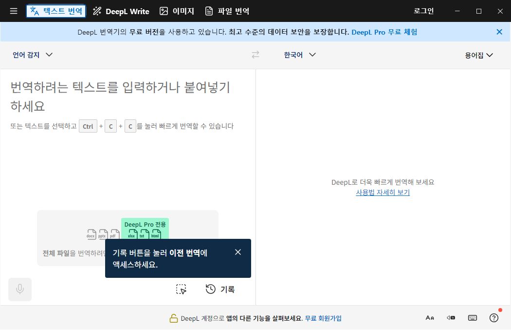 DeepL API Free를 구독해도 DeepL 번역기(웹 번역기 및 데스크톱 앱)는 이용할 수 없으며 CAT툴 통합도 지원하지 않습니다.