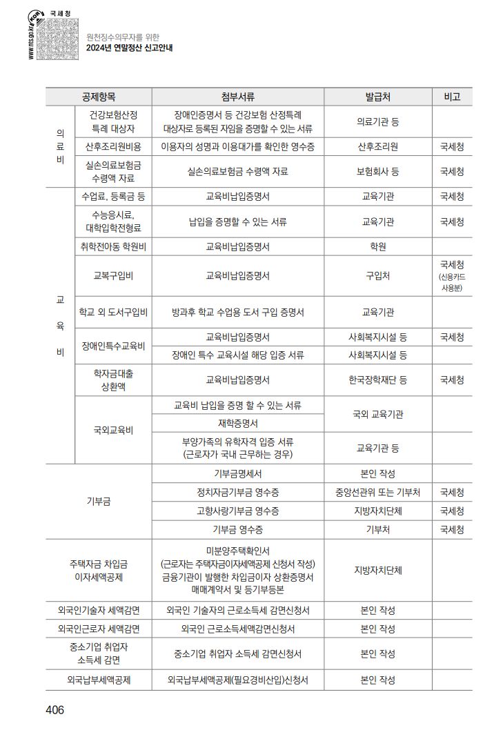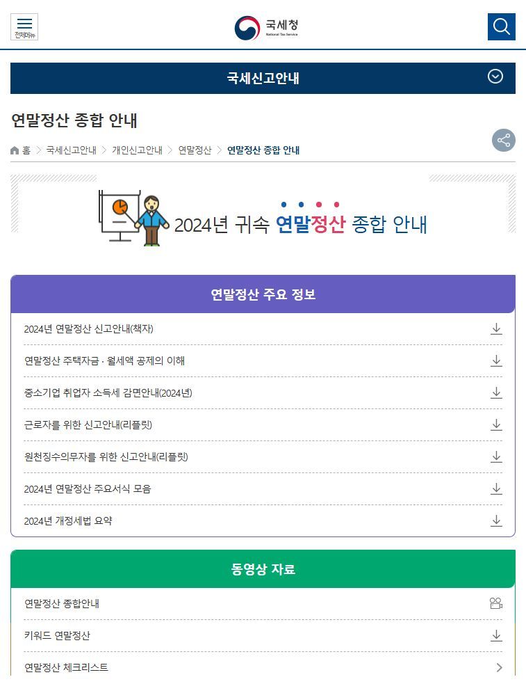 국세청) 2024년 귀속 연말정산 종합 안내 본문