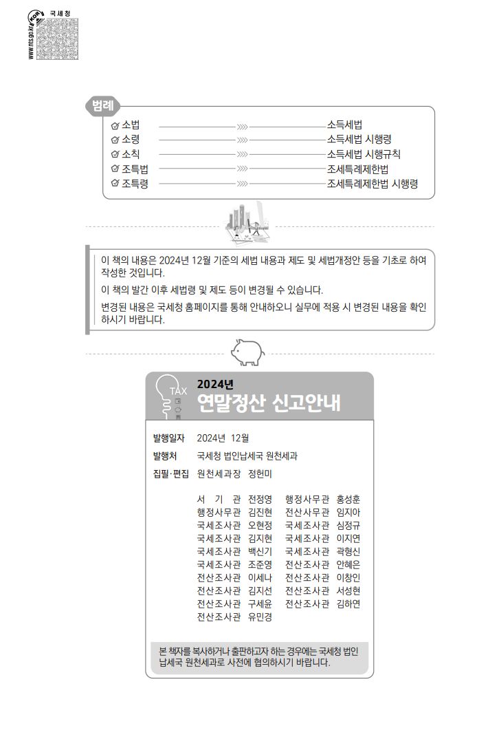 책자 차례: 2024년 귀속 연말정산 중점 추진사항,