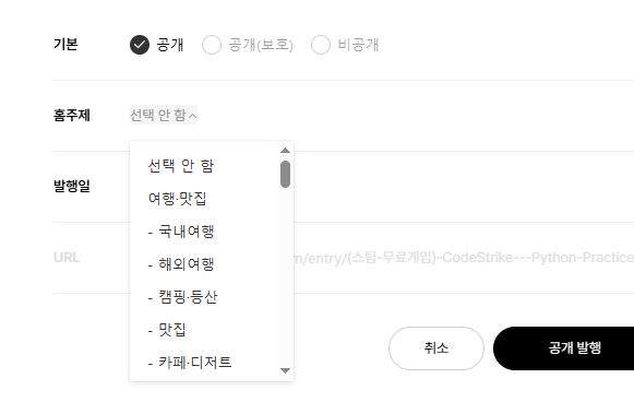 티스토리 PC웹 편집기 개선희망점: 카테고리 선택창 본문