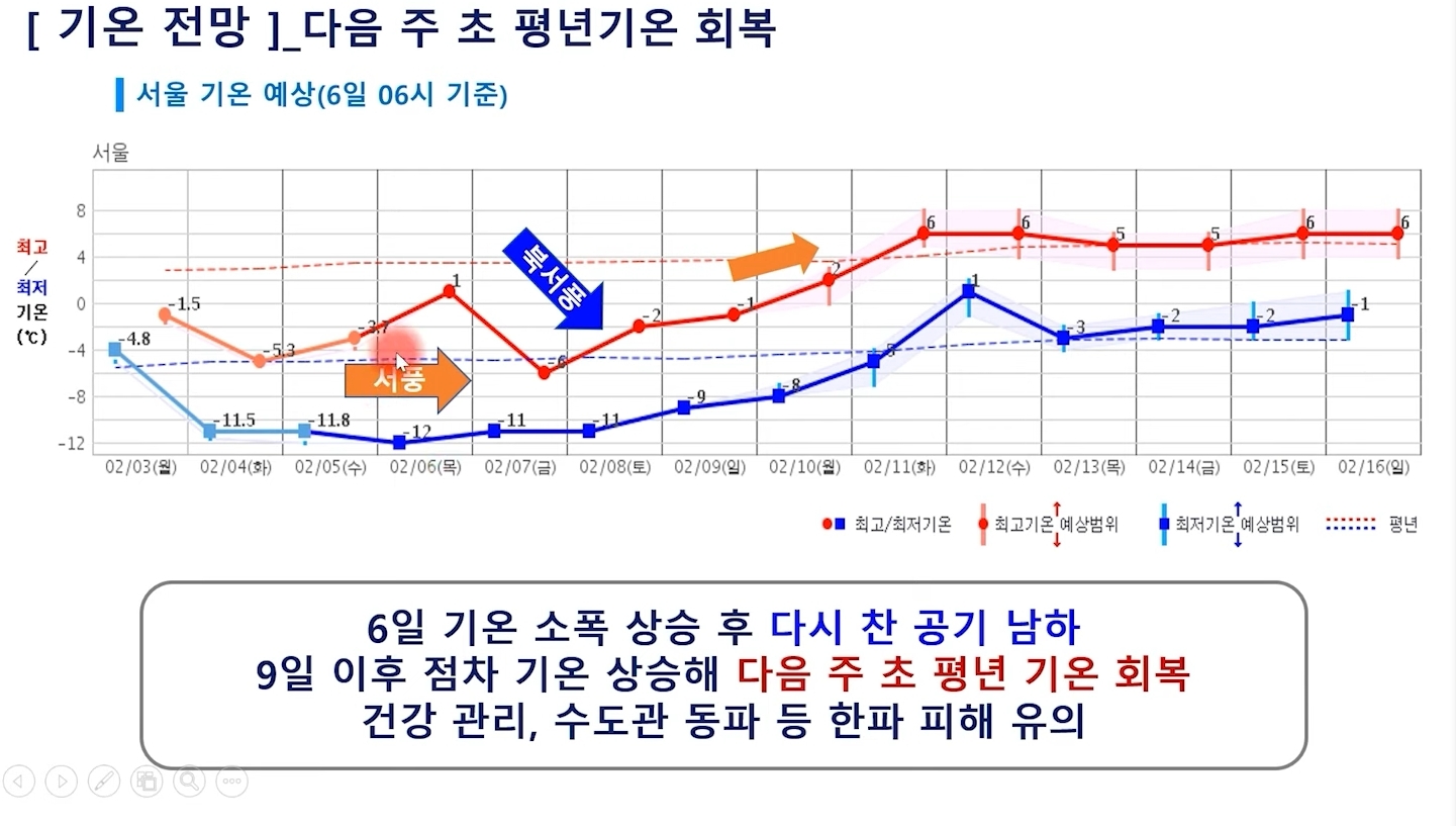 2025.2.9. 주간 일기예보. 오늘까지 강추위, 내일부터 슬슬 날씨 풀려 본문