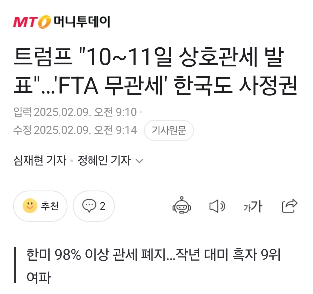 상호관세쪽은 트럼프의 억지도 있습니다. 상대국의 부가가치세까지 시비거는 듯.