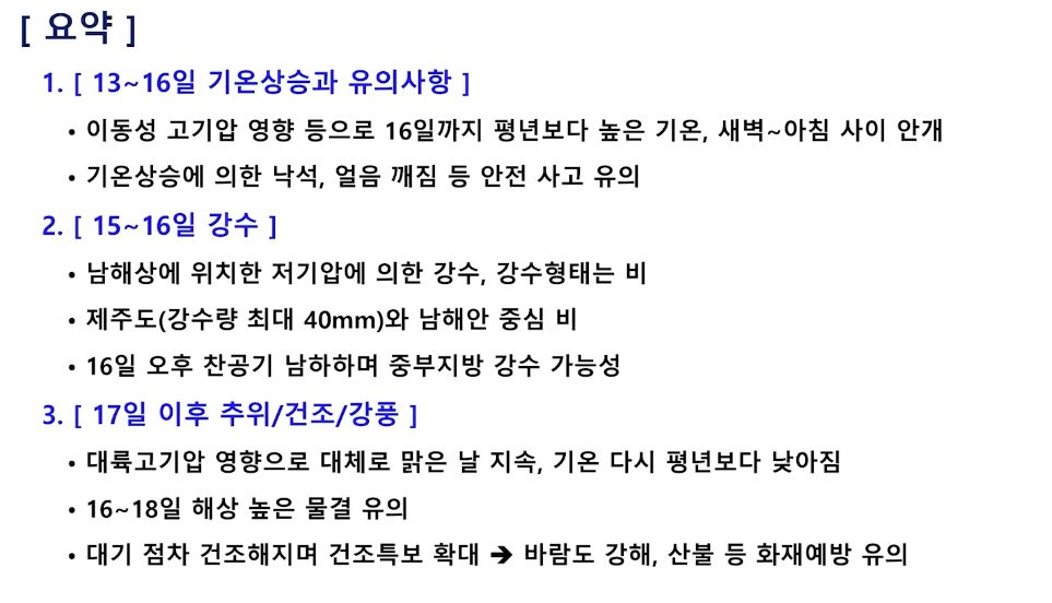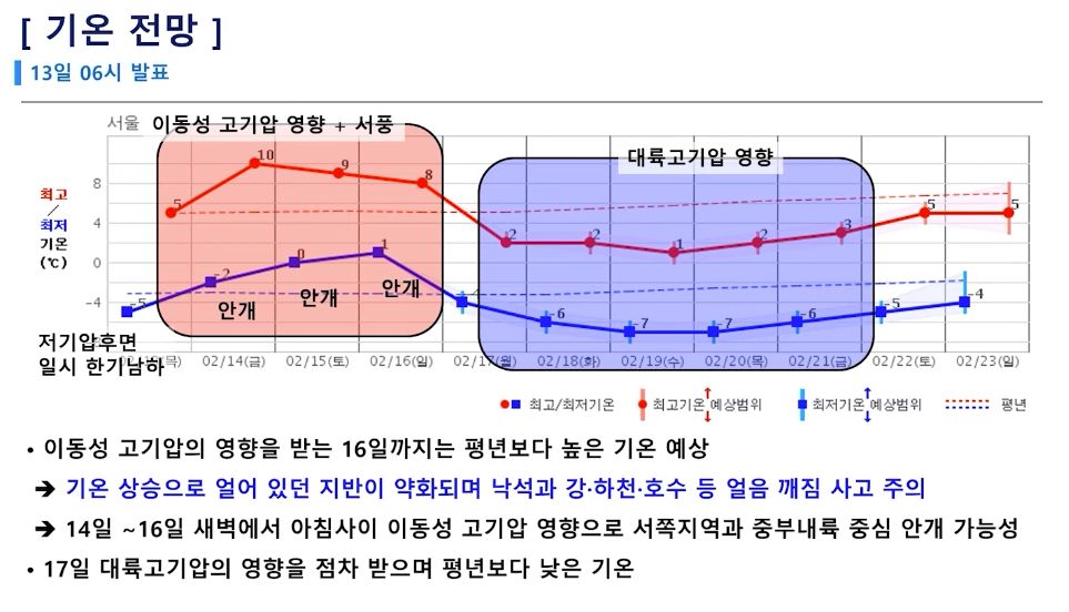 주말 낮기온 서울 10도. 다음 주 다시 추워집니다. (2025년 2월 13일 기상청 예보브리핑)