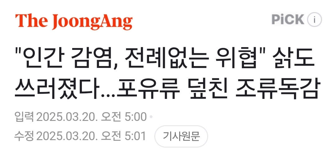 “조류독감 인간에게 점점 더 큰 위험으로 다가와”...전문가 경고 나와