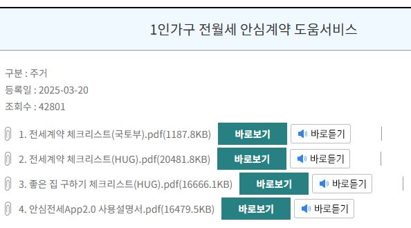 ★ 1인가구 전월세 안심계약 도움서비스 (전세계약 체크리스트, 좋은 집 구하기 체크리스트, 안심전세 앱 사용법, 행정관서와 외부기관 링크)
