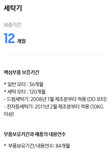 양대 가전회사 세탁기 DD모터(벨트없이 세탁통 직결식인 모터)의 보증기간에 대해 본문