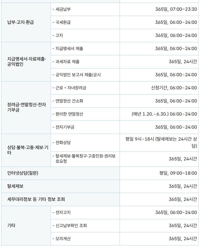 국세청 홈택스 서비스별 이용시간 (2025.5) 본문