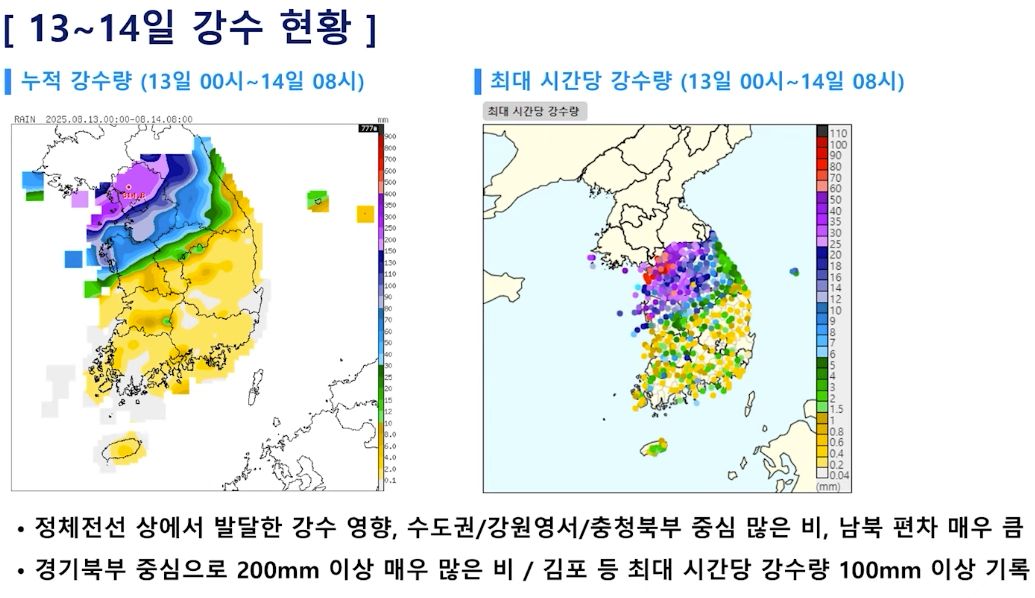 13~14일 경기, 강원영서, 충청북부지방 폭우기록