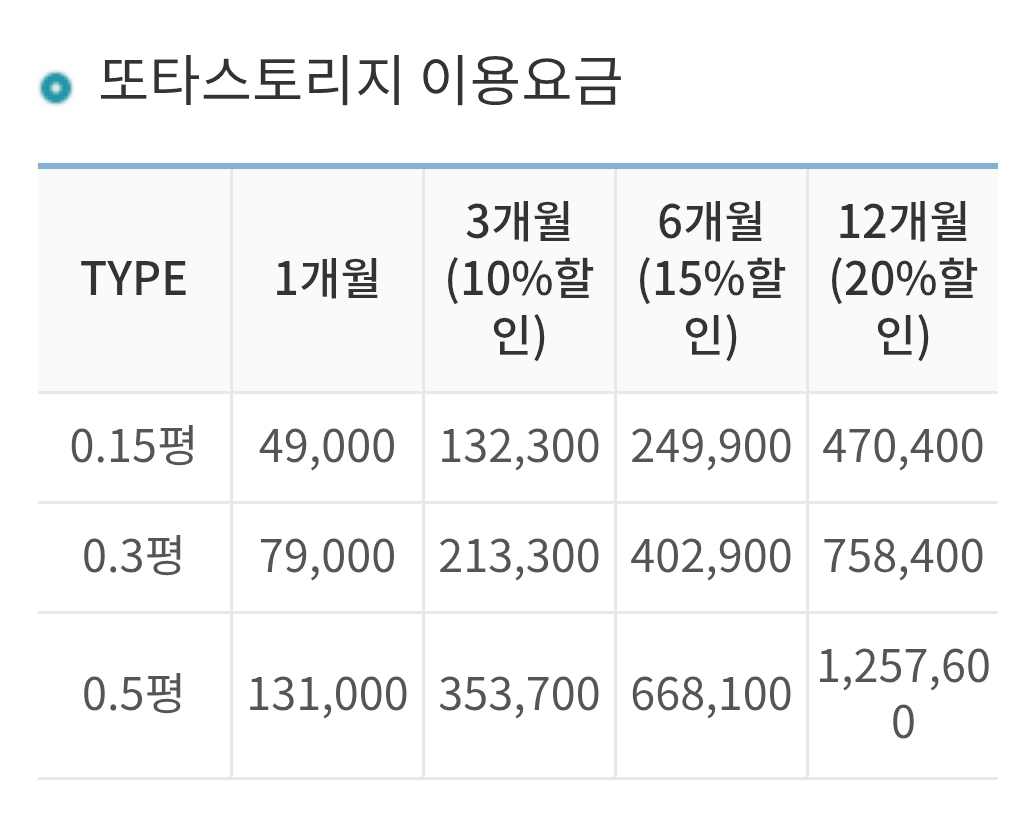 또타스토리지 가격표
