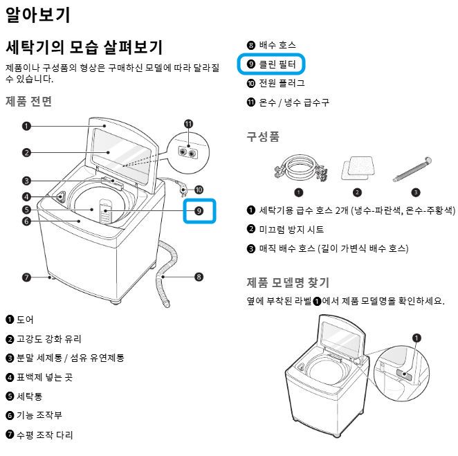 LG전자 세탁기 중 먼지필터 1개만 있는 모델은 본문