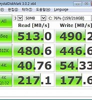 이걸 USB 3.0 연결되는 2.5" 외장하드케이스에 넣어 해 본 벤치마크가 아래 화면입니다: