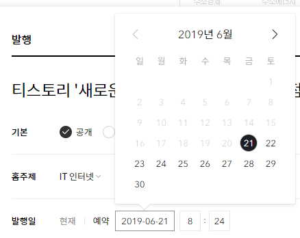 발행일시 예약부분의 달력창은 편하게 바뀌었군요. 단, 세부적으로는 약간 다르게 동작합니다.
