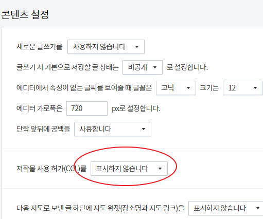 현재 CCL(크리에이티브 커먼즈 라이센스)를 표시하지 않도록 해도
