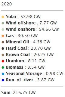 원자력과 석탄화력발전은 위의 설비용량을 보면 유지하고 있지만, 발전량은 꾸준히 줄여가고 있다.[footnote]독일은 지금도 석탄발전소를 수명연장하고 개량해 사용하고 있는데, 새로 짓지는 않고 고쳐 쓰다가 2035년쯤 끝내려는 듯. 천연가스는 증설 계속, 그 외 수소연료전지외의 수소발전 등을 늘림. [본문으로]
