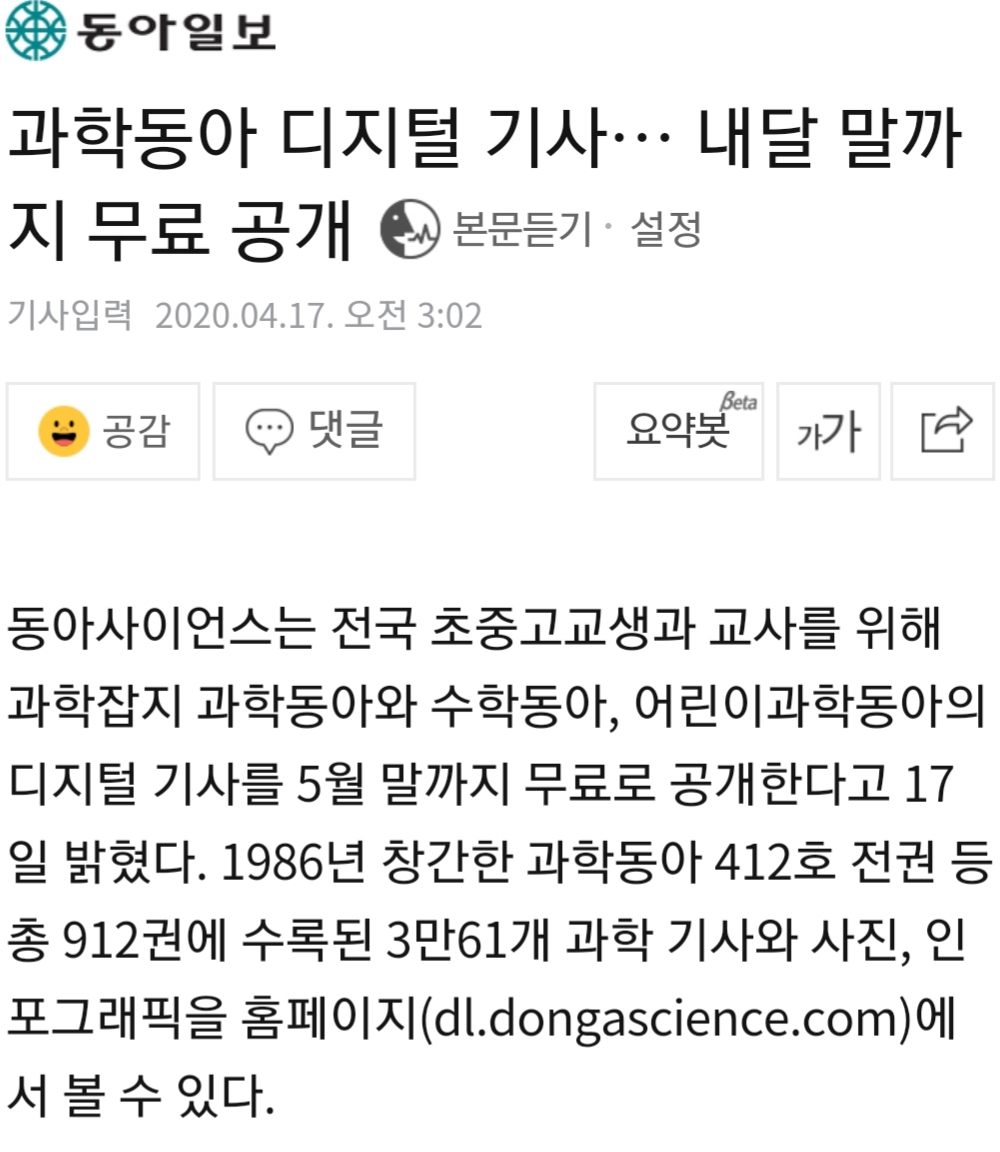 수학동아, 과학동아, 어린이 과학동아 디지털(잡지) 5월 말까지 무료 공개 본문