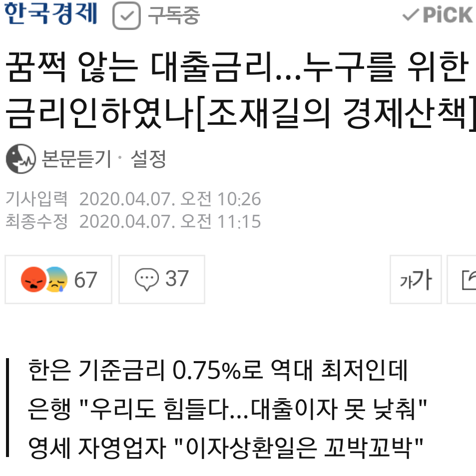 한국은행은 제로금리시대라는데, 왜 신용대출금리와 주택담보대출금리는 내리지 않을까요.