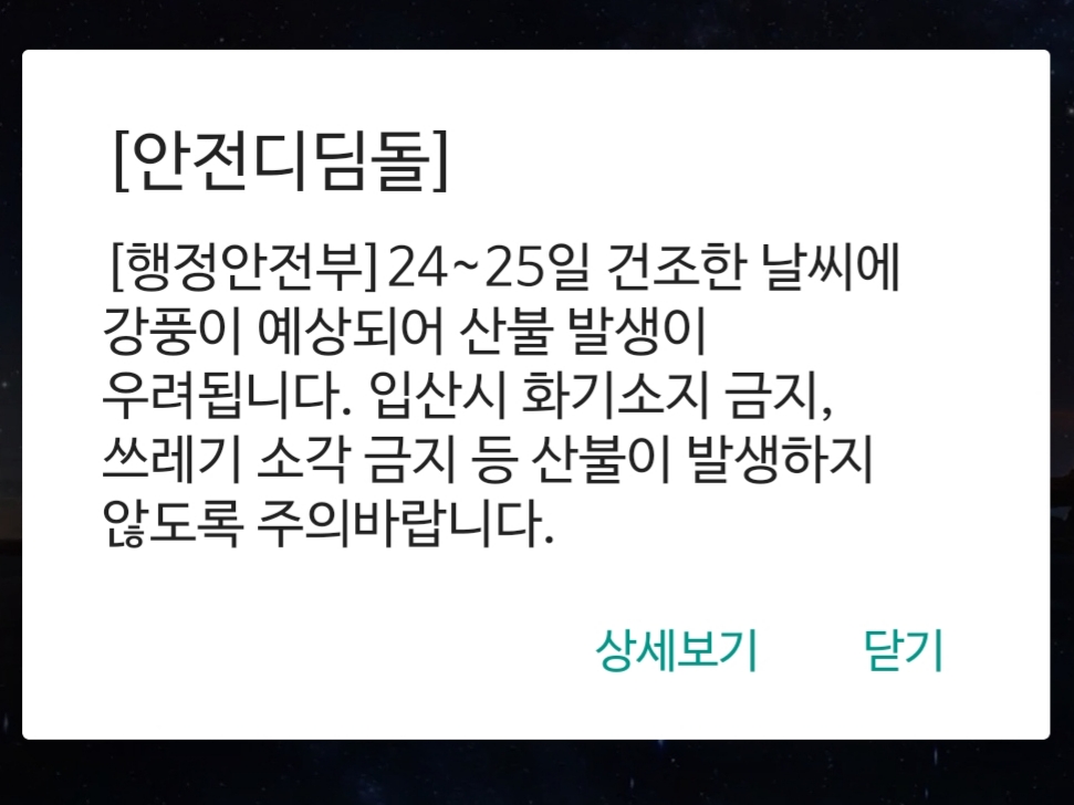 그게 돈들어 싫으면 일반문자와 동일하게 알람이나 사이렌을 끌 수 있는, 그러면서 3등급에서 보내는 전염병보다 낮은 경계수준을 요구하는 4등급 재난문자를 신설하란 말이야..