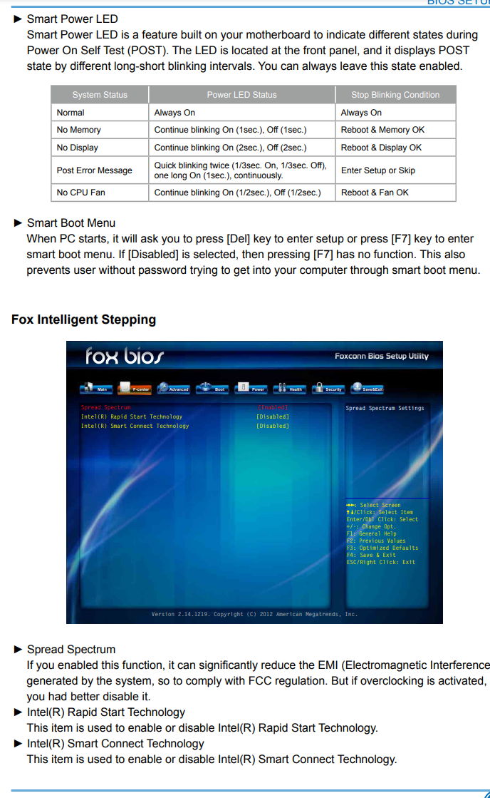 여기까지다. BIOS 셋업메뉴는 이것말고도 있지만, 설명서도 그다지 친절하지 않다. "A ENABLE/DISABLE은 기능 A를 ENABLE/DISABLE하는 것이다" 이런 식이다. -_- 수십 년 간 바뀌지 않는... 요즘 이 텍스트 몇 줄 보충해주지 못할 만큼 BIOS 펌웨어 메모리가 부족하진 않을 텐데 말야.