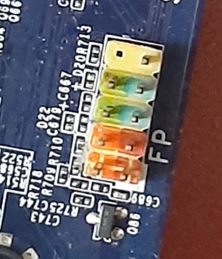 전원스위치, 리셋스위치, 각종 LED, 비프음과 내장 사운드출력 핀, SP/DIF 헤더, 시스템 팬(fan) 연결핀, 보안장치핀 등