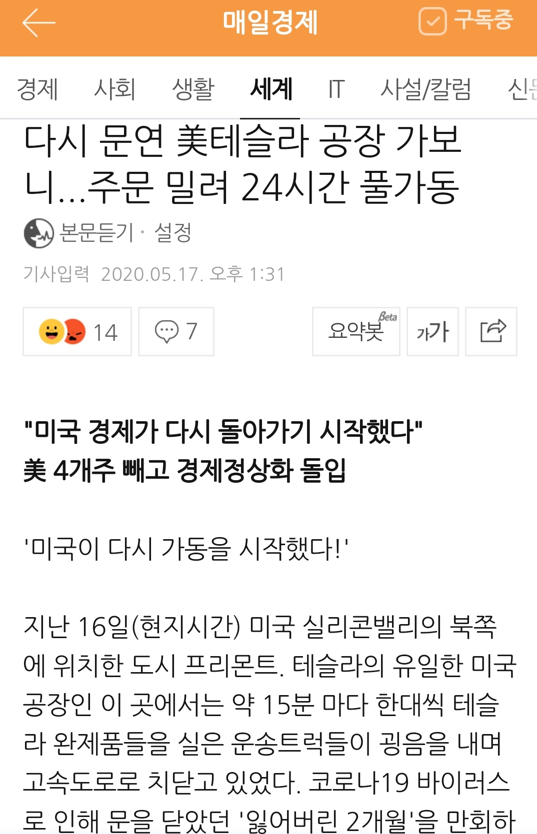 "미국도 脫코로나19"라는 뉴스 본문