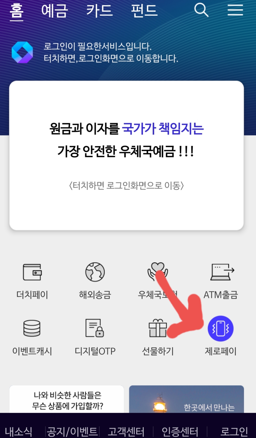 우체국뱅킹앱에 메뉴가 보여서 터치해보니,