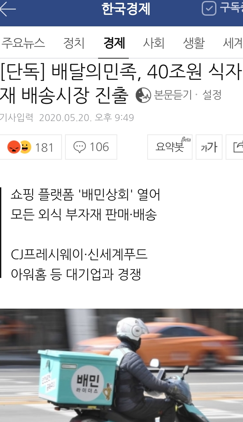 배달의민족, 식자재 배달업 진출 본문