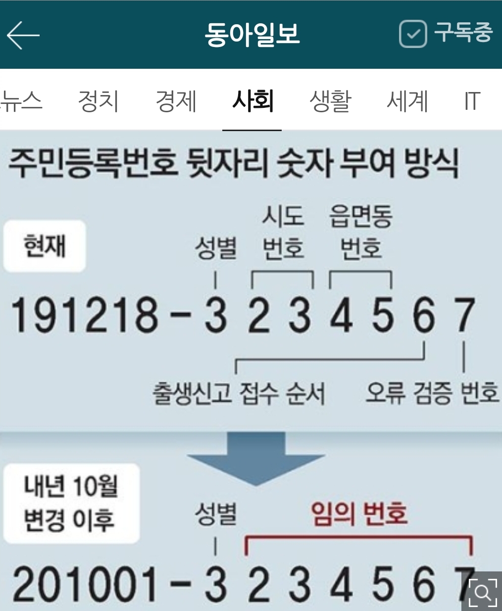 그리고 주민번호가 정말 여러 용도로 사용되면서, 특히 인터넷세상이 열린 다음에 슬슬 이거 바꾸자는 얘기가 나왔고, 한 번에 엎어버리고 전 국민에게 새 번호를 주는 건 너무 지출이 크니까 저런 식으로 해가려나 봅니다.
