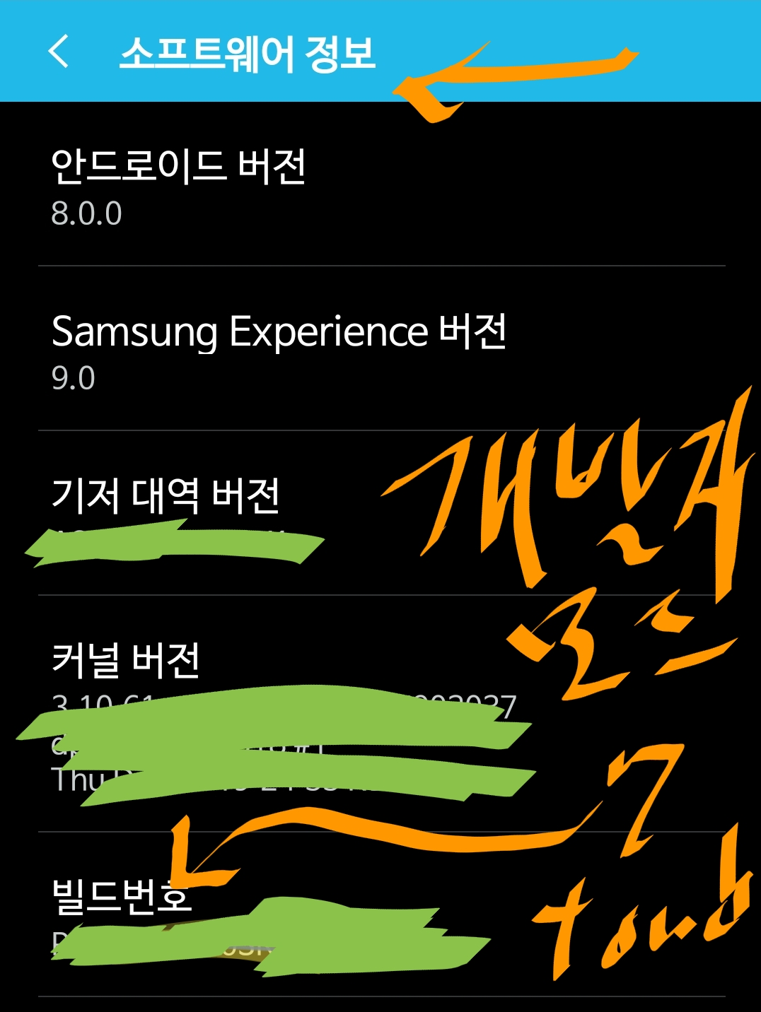 설정.. 휴대정화 정보.. 소프트웨어 정보 화면을 열고,