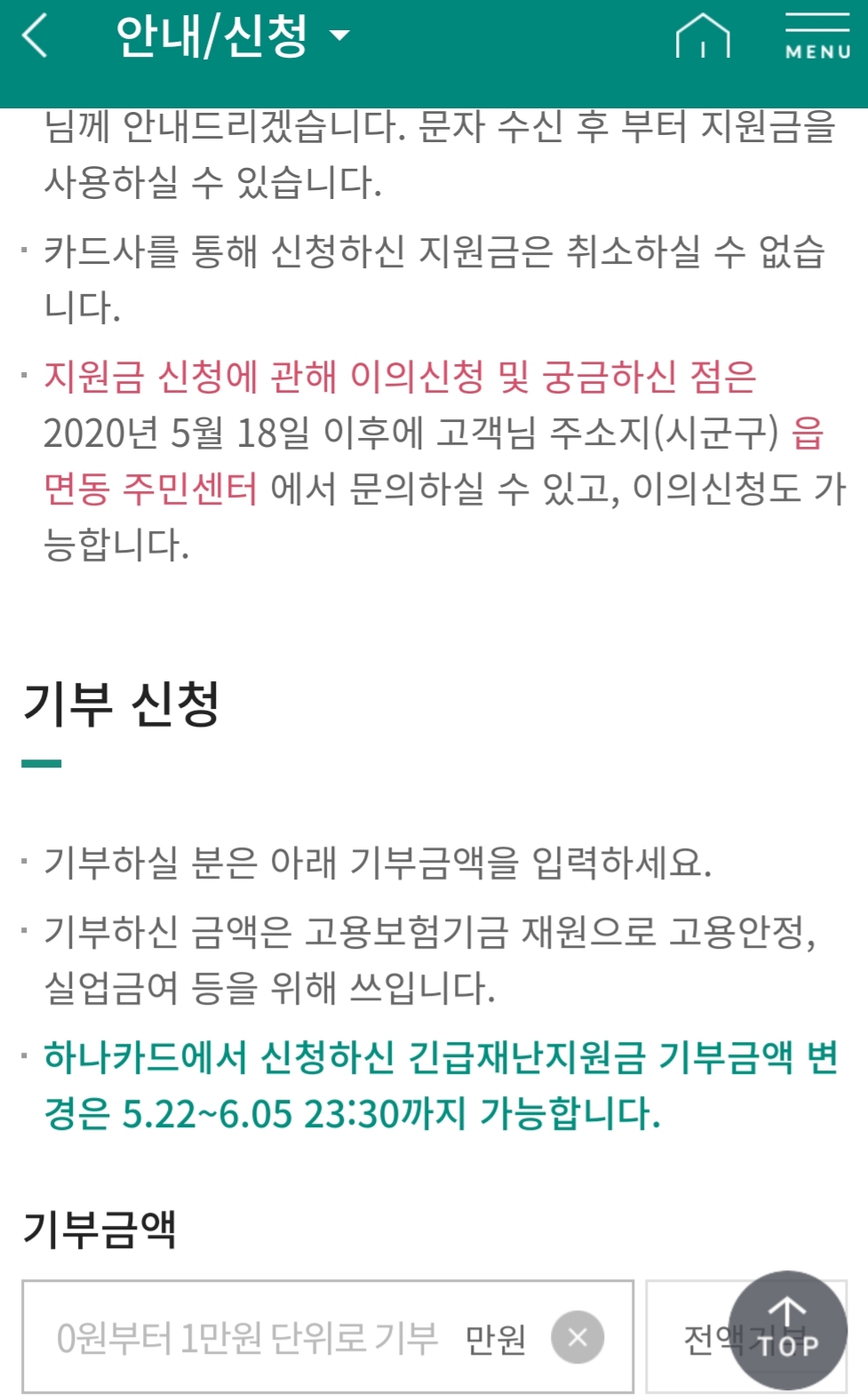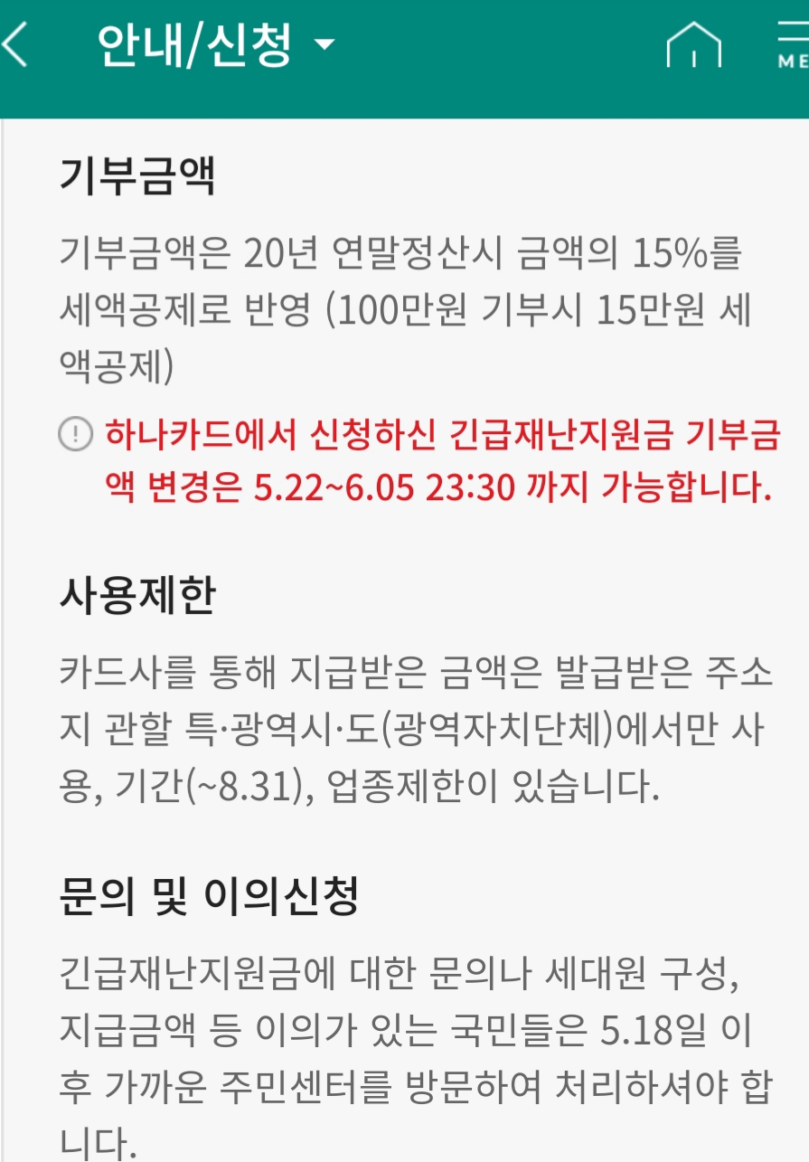 만약 정부에 기부하는 액수를 늘리고 싶거나 줄이고 싶다면, 이 카드회사는 6월 5일 23시 30분 전에 정정신청해달라고 고지.