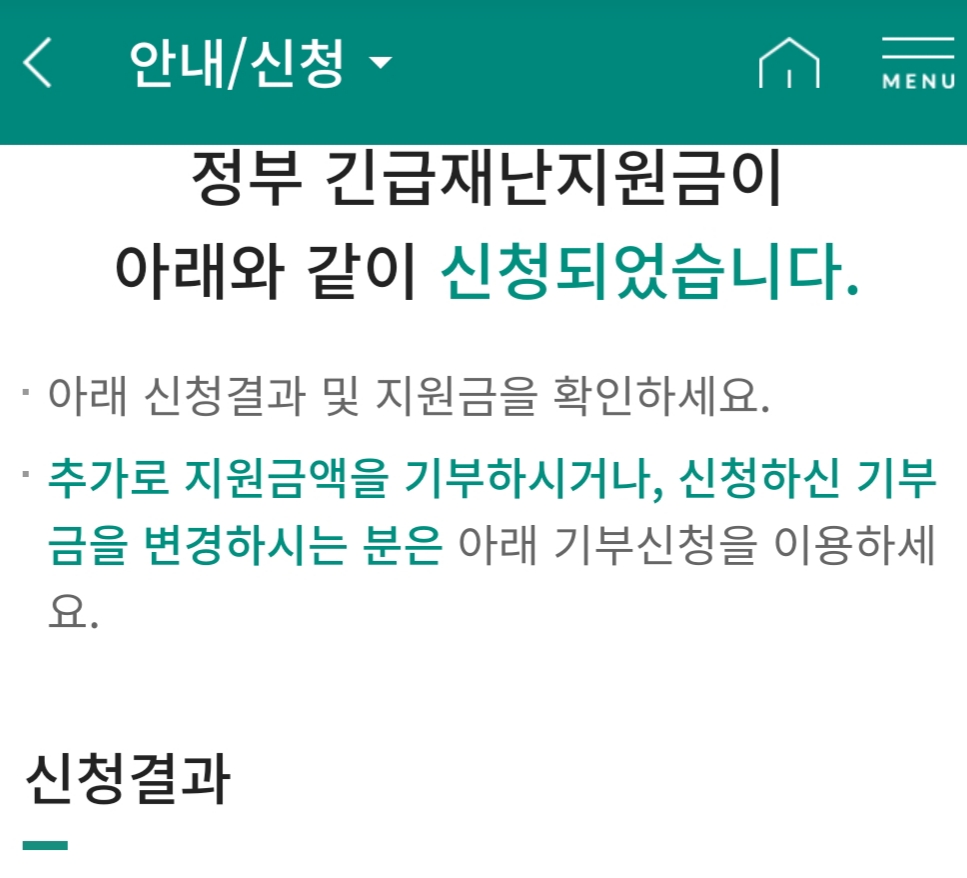 정부 긴급재난지원금, 신용카드앱에서 신청한 것 본문