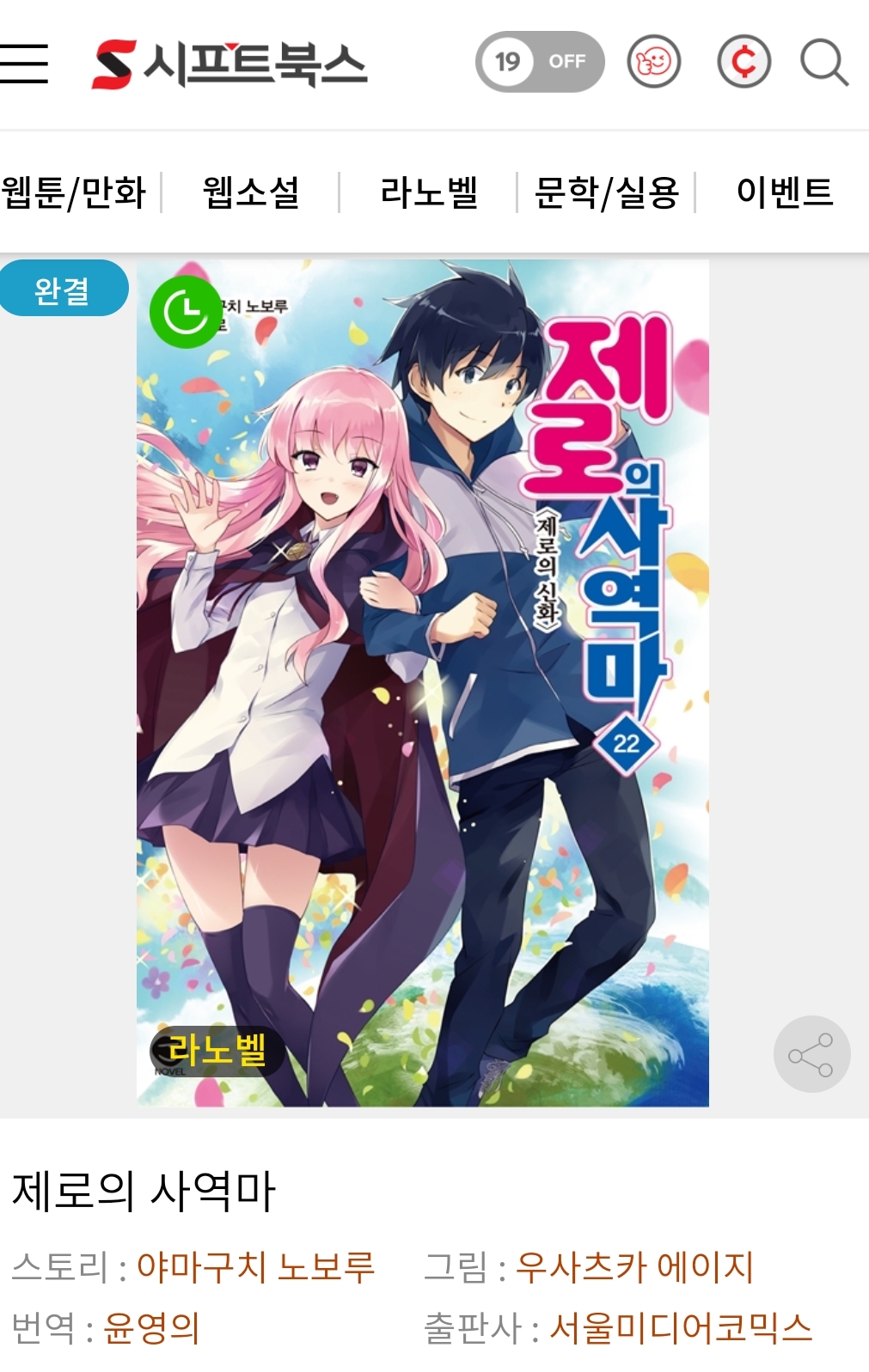 원래 완결(연재 종결)된 작품인데, YES24.COM 자체 전자책 레이블인 시프트북스로 연재 중. 카카오페이지처럼 한 권을 여러 장으로 쪼개어 '기다리면 0원'에 미리보기 결제 방식.