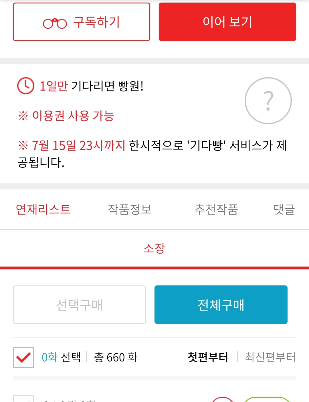그리고 참고, 1캐시는 50원꼴이니까 예를 들어 1권이 30화로 나뉘어 있고 1화가 3캐시라면, 1권에 90캐시, 4500원이 됩니다. 제대로 정주행할 분들은 그냥 전자책을 구매하거나 대여하는 게 나을 수도 있다는 이야기.