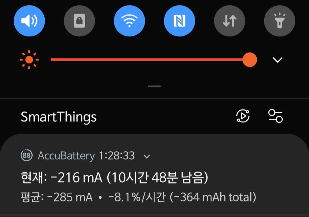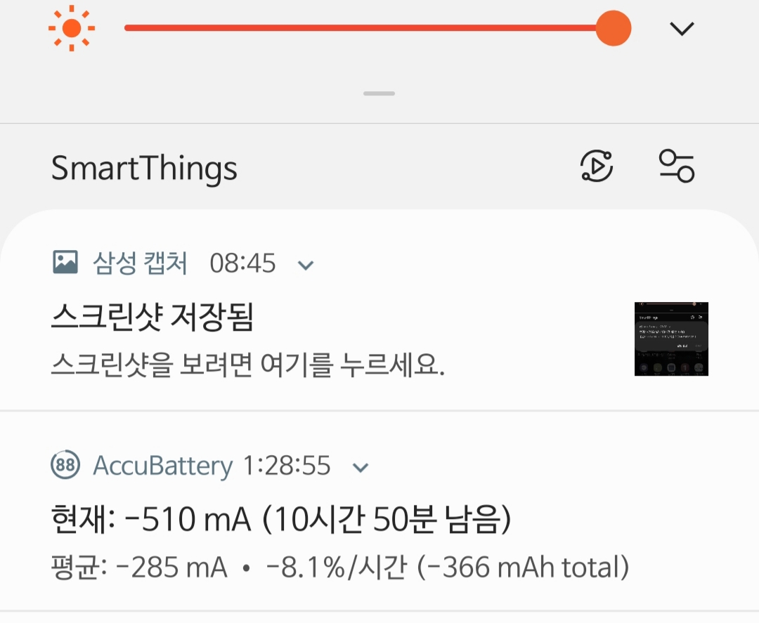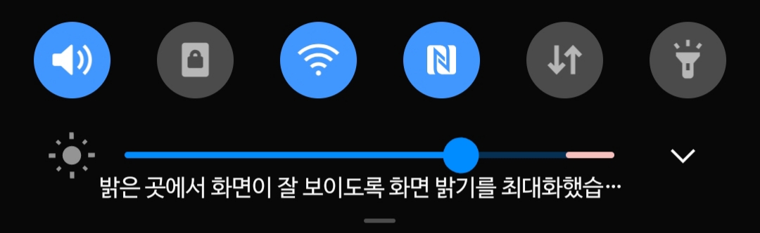 비온 직후 구름낀 흐린 날이라도 실외에서는 화면 밝기 자동으로 두면 밝기는 최대로 자동조절.
