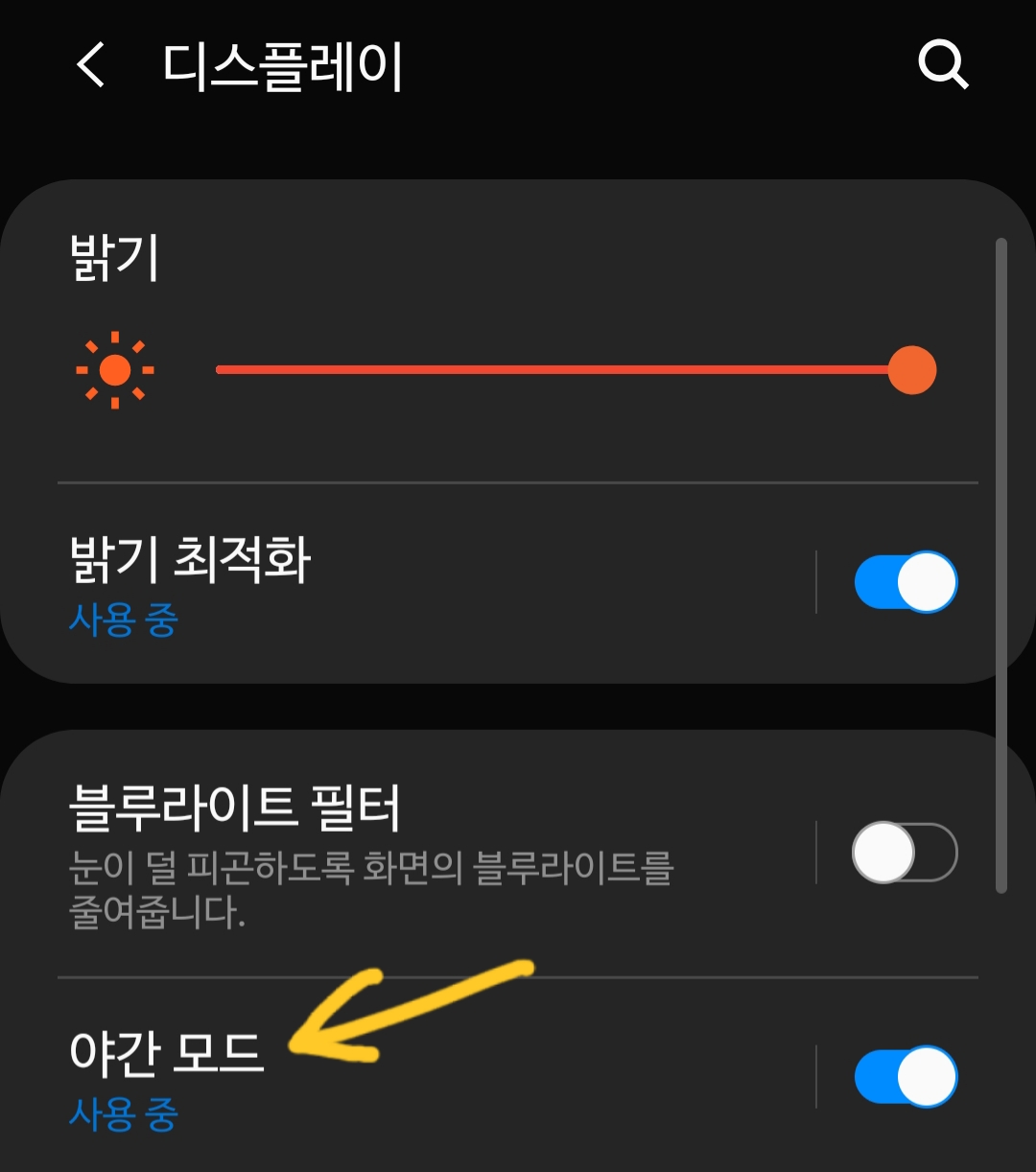 OLED 화면에서 야간모드1/다크모드일 때, 용도에 따라 약간이나마 전기절약이 될 것 깉은데..