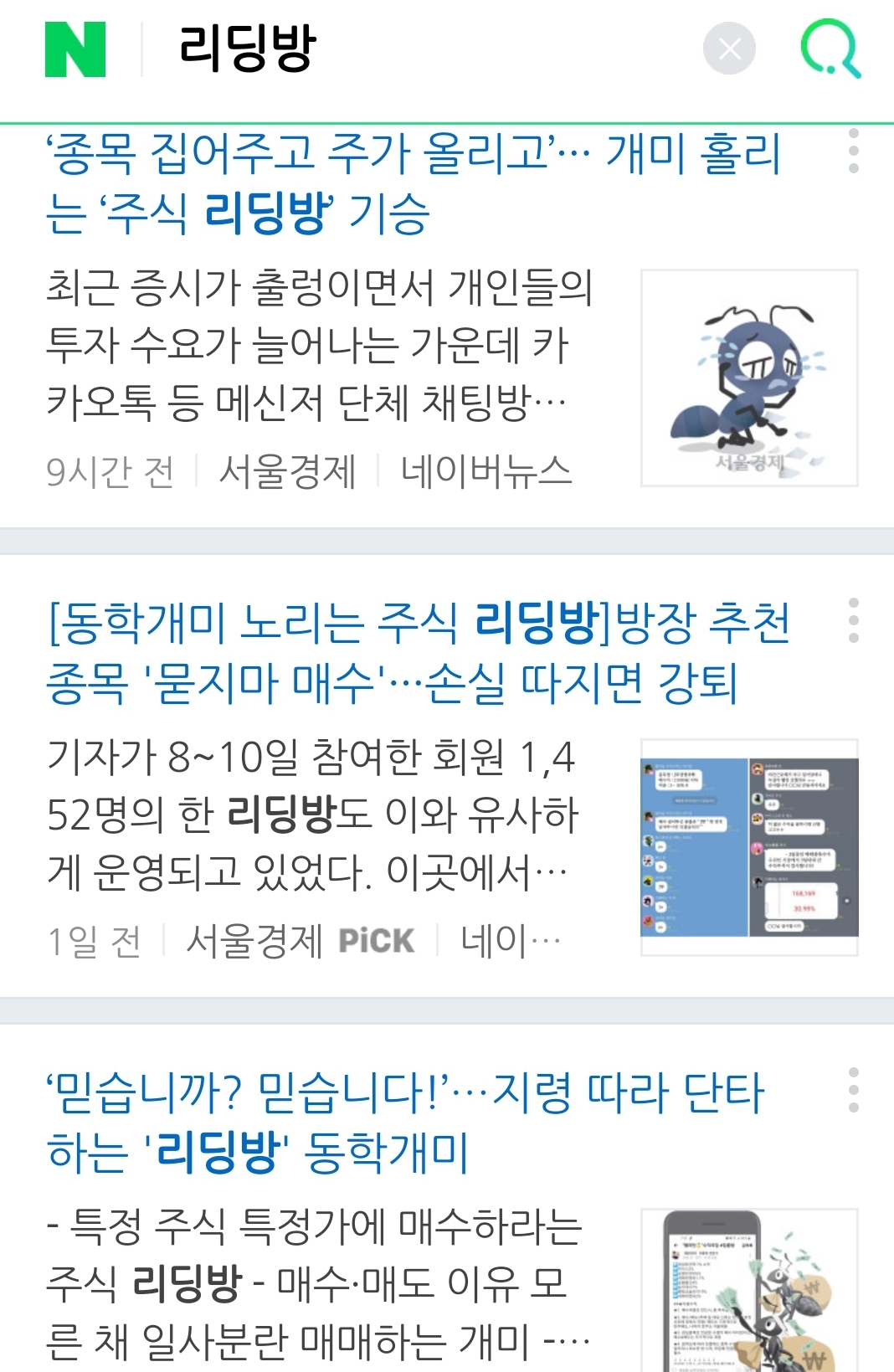 ※ 등쳐먹는 작전은 아니고 그냥 서비스로 운영하거나, 주식자문으로 본업나서기 전에 실력테스트삼아 해보는 경우도 많을 테고, 그 내용이 정식등록하고 자기 '주식방송'하는 소위 '전문가'와 뭐가 다르냐하면 그것도 그렇습니다만, 기사 몇 개 보면 알 수 있듯이 업태 또는 행태가 좀 경계선에 걸쳐 있습니다. 리딩방 방장말믿고 투자하는 건 어르신들 계주믿고 계드는 것이나, 기획부동산 전화상담만 받아보고는 덜컥 계좌이체해 부동산 투자하는 것보다 리스크가 작지 않을 텐데요. 예탁원은 계주가 아니고 땅이 아니라 상장주식인 만큼 일단은 환금성은 있지만.