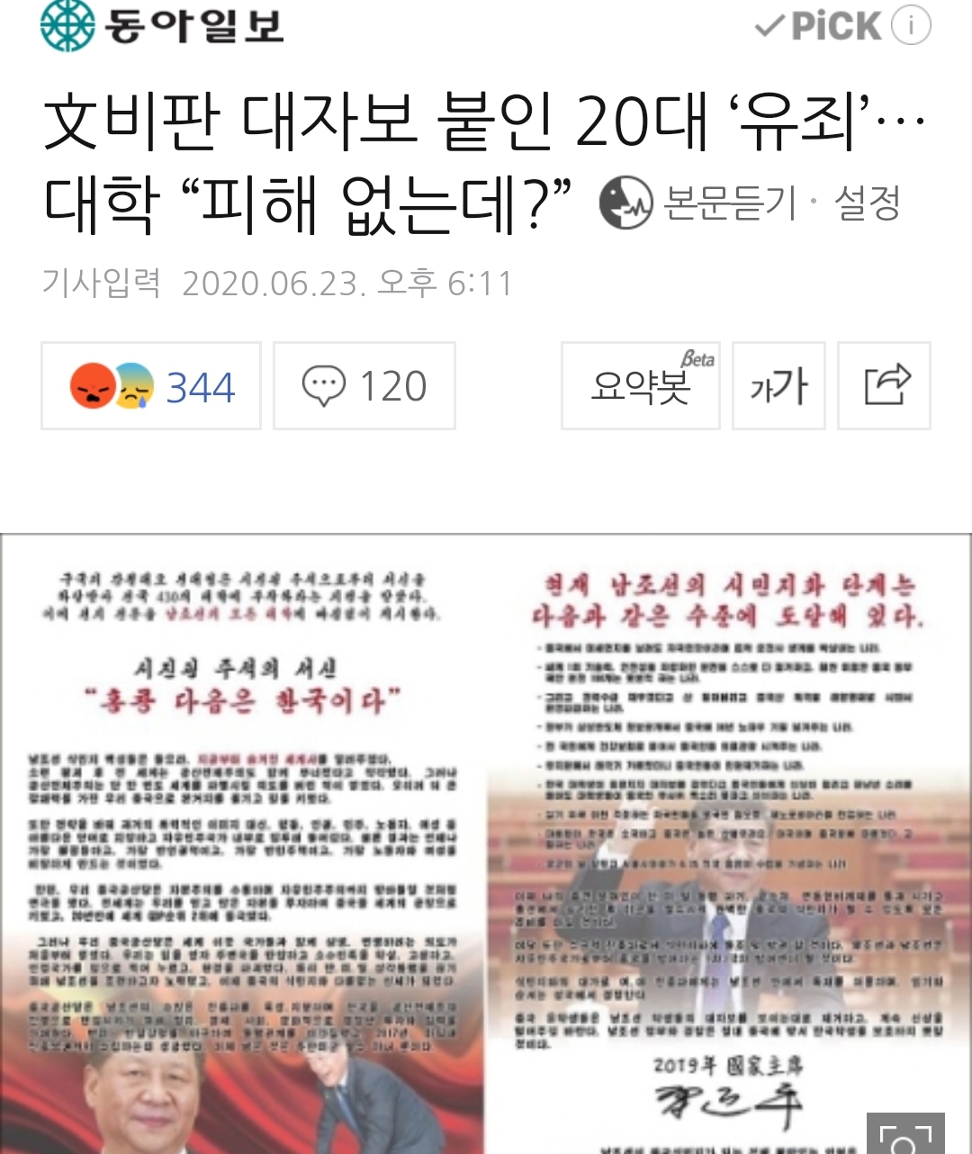 文비판 대자보 붙인 20대 ‘유죄’…대학 “피해 없는데?”