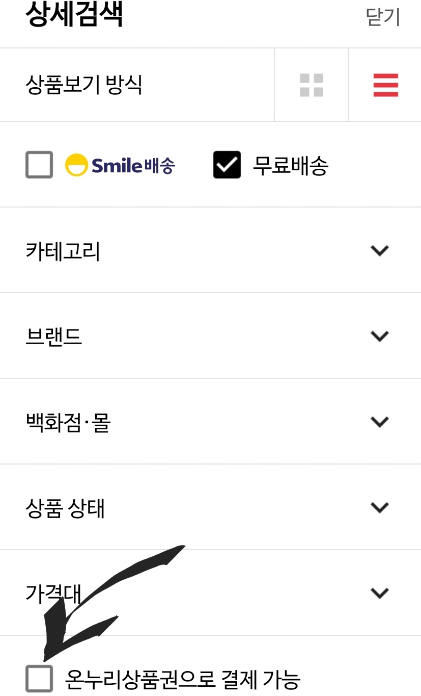 일단 이베이 지마켓, 옥션에는 생겼습니다. 상품목록 우상단 필터 버튼.