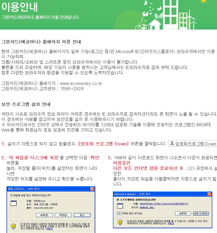 이거, 아무 짝에도 못 쓰는 것 아닌가요? 요즘 세상에 누가 인터넷 익스플로러를 쓰며, 윈도우XP보안프로그램을 깔아 저런 사이트에 접속하냐고.., 카드사와 함께 시에서 꽤나 홍보하던 것 같던데, 미니태양광때도 여기 엮지 않았나? 완전 실망입니다.
