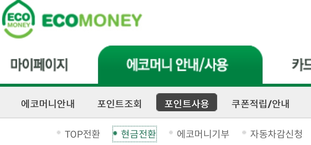 에코머니(ecomoney) 포인트, 현금이나 BC TOP 포인트로 전환하기.. 본문
