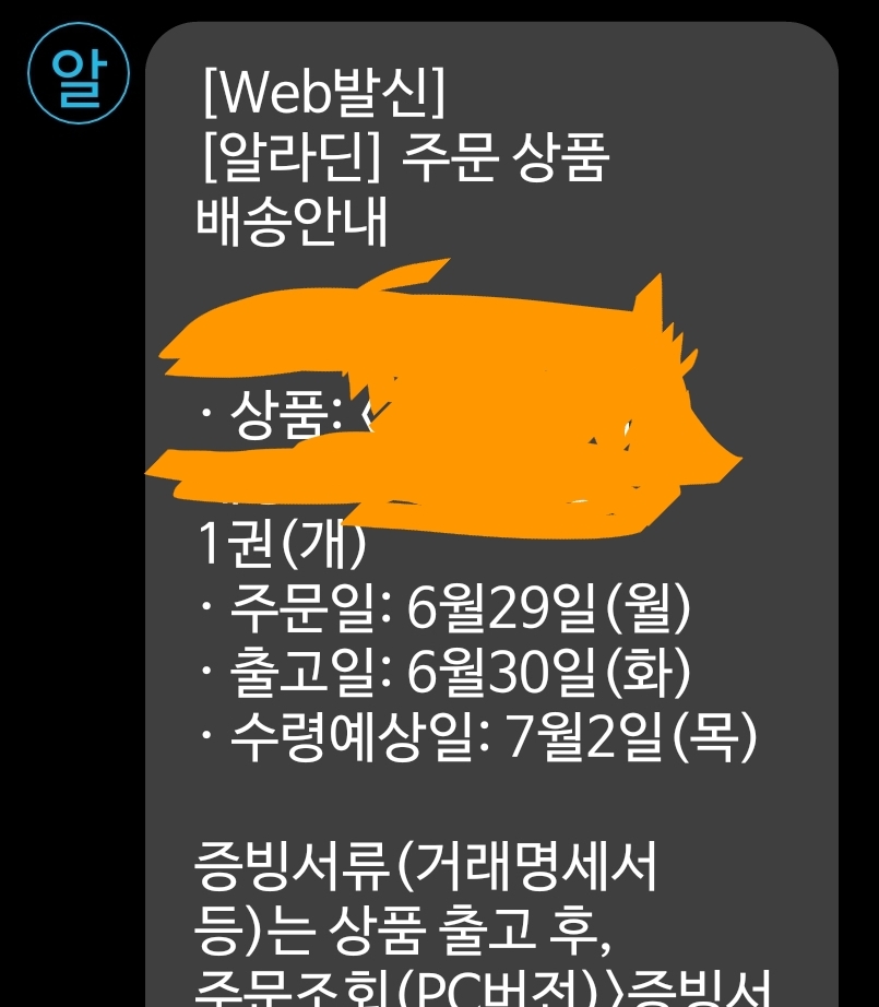 ※ 그런데, 이것과는 또 다르게, 오픈마켓에 물건주문할 때는 상품명이 표시되는 게 좋더군요. 책하고는 달리 하루에 여럿 주문하거나 받을 일이 종종 있기도 하고, 요즘 비대면이 대세라 택배기스 문자를 받아 어떻게 받을지 정해주어야 하기도 하는데 이건 상품마다 다를 수 있어서. 그리고 속옷처럼 굳이 상품명에 표시하고 싶지 않은 것도 있을 텐데 그런 건, 송장번호만 표시할 수 있지만 불편할 경우도 있을 테고1 판매자이름으로 구별?? 아니면 다른 방법?