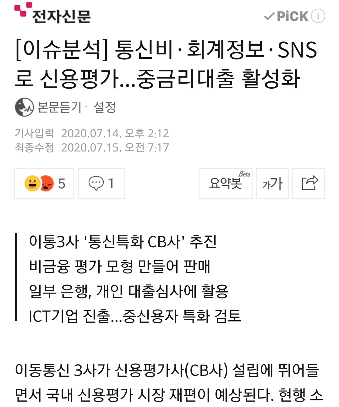 빅테크처럼 비금융데이터 활용해 대출 차별화에 시동 - zdnet 2020/07/30