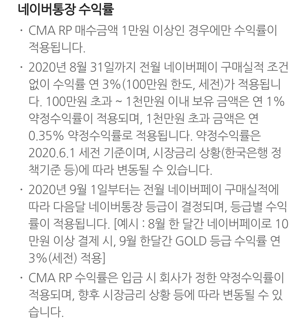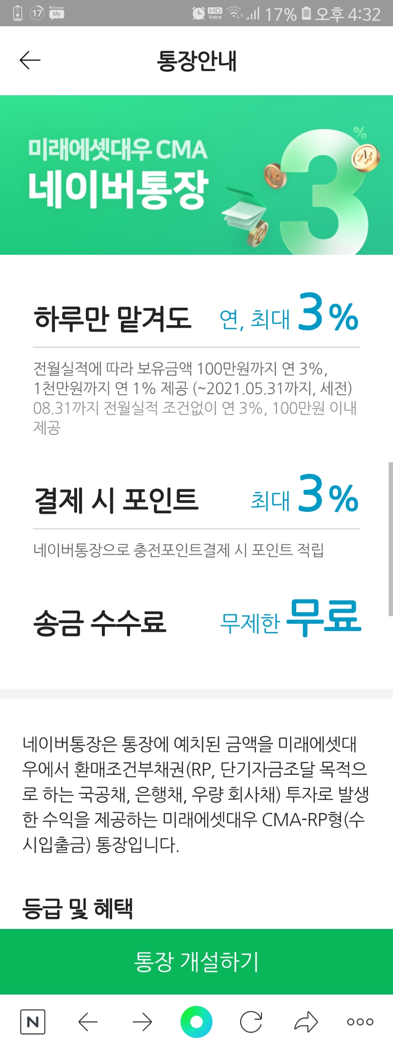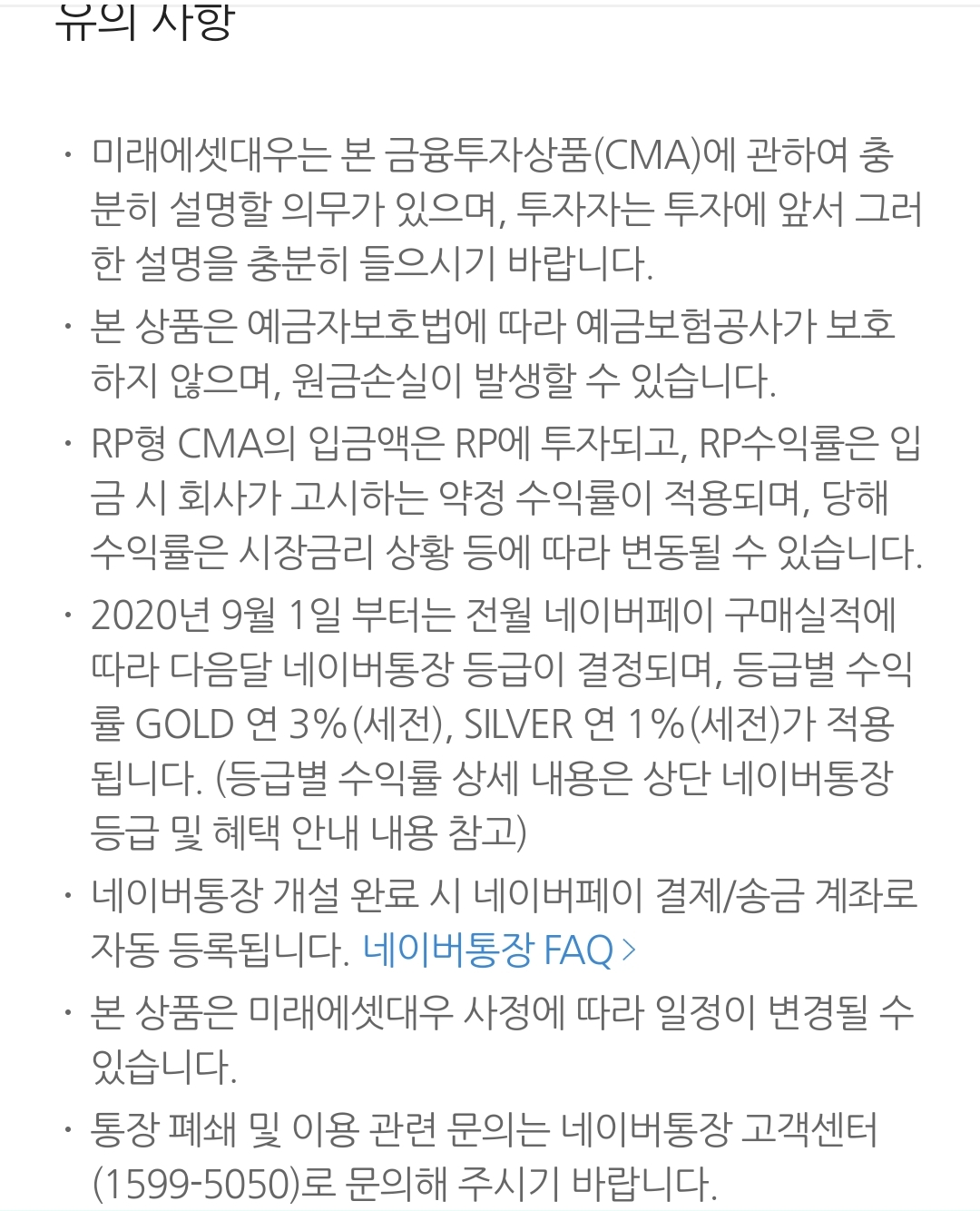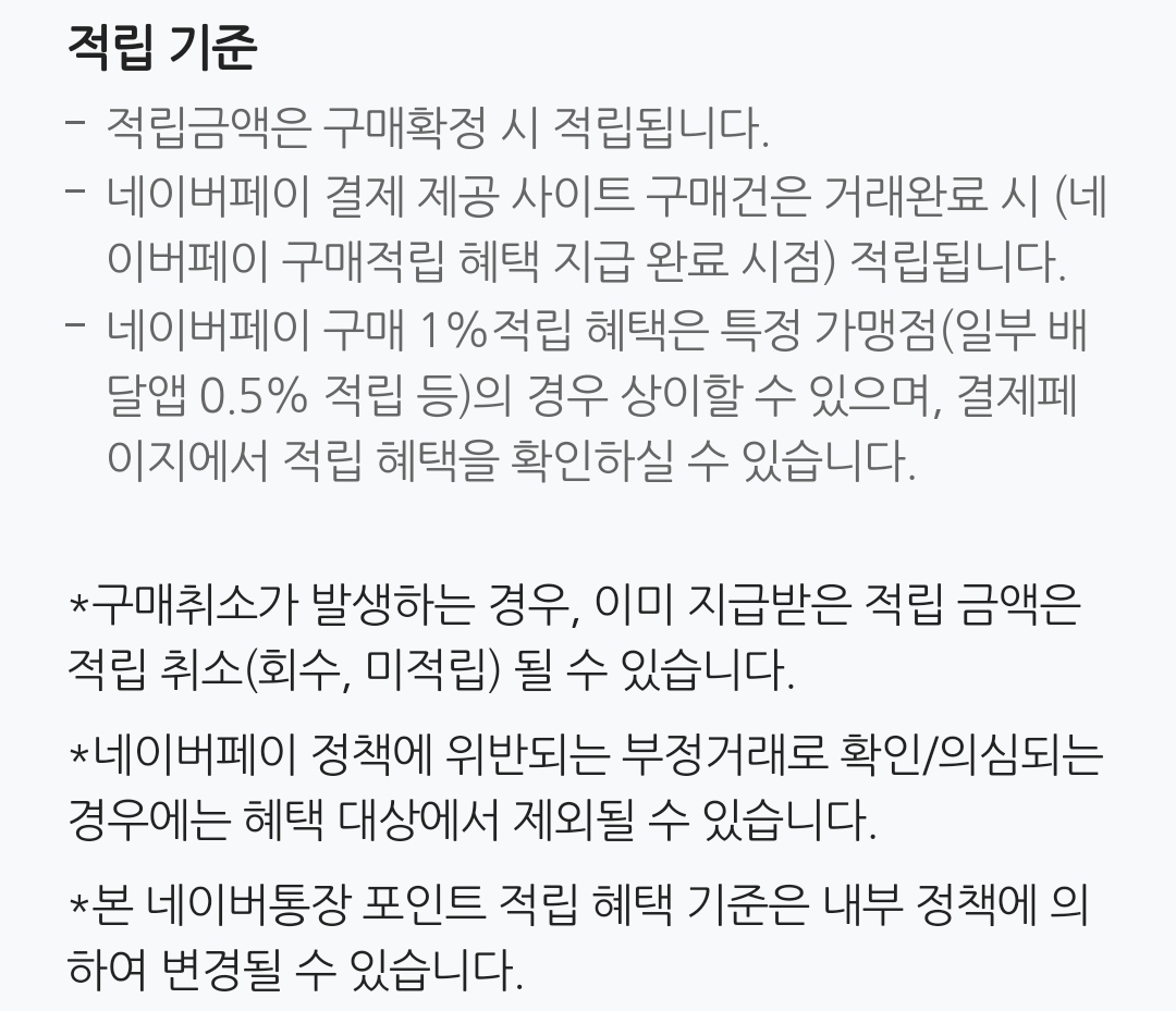네이버통장 안내문, 네이버페이 포인트 충전결제 본문