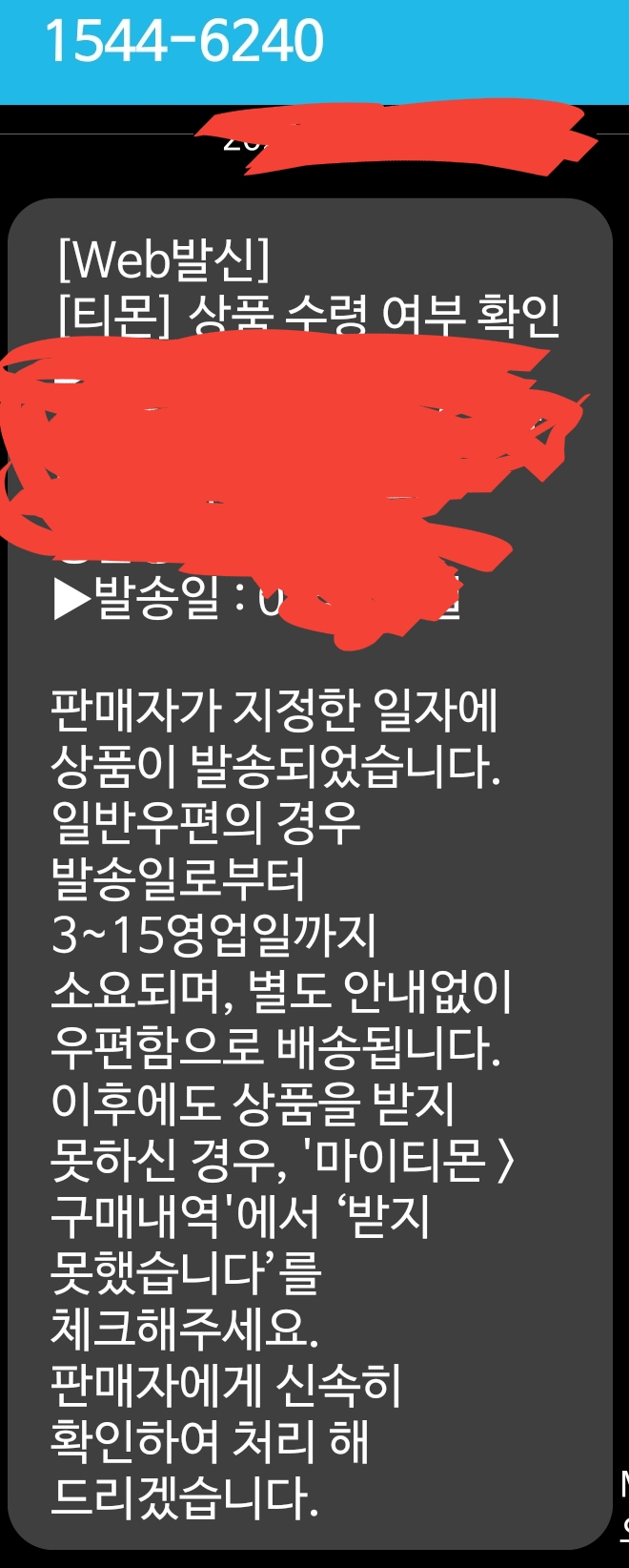 우편배송인 만큼 때때로 분실되는 일이 있다고 하고 관련 커뮤니티에 그런 얘길 적는 사람도 드물지 않은데, 판매자들도 일정액이상 택배라고 공지하고 그 사이트도 알고 있는지 이런 문자를 보내고 수취확인기간도 넉넉히 잡습니다.