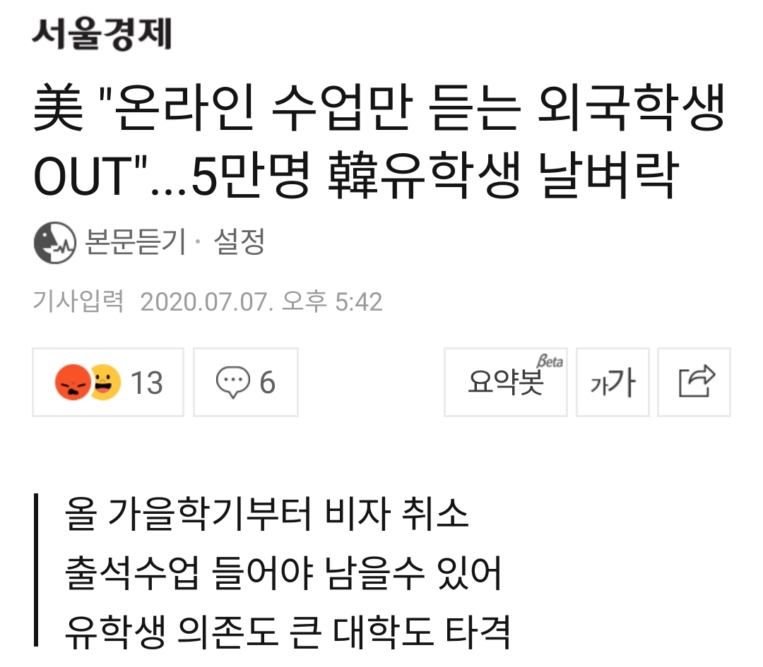 美 온라인 수업 '비자 취소' 조치에 韓 유학생들 충격·분통, 조아라 기자, 국제