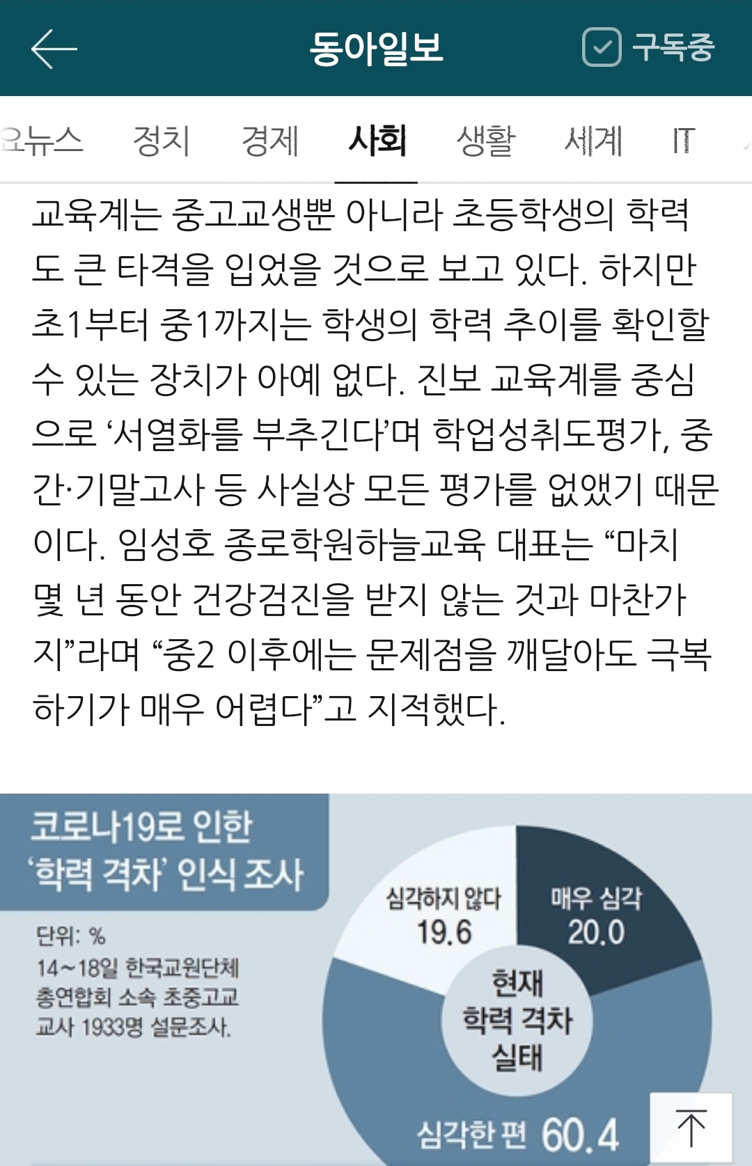 학력평가를 서열화의 도구로서만 쓸/인식할 게 아니라 교육의 보완재로 생각해야 각각에 맞는 처방이 가능하다 - 동아일보 기사의 일부 인용과 소감 섞음.