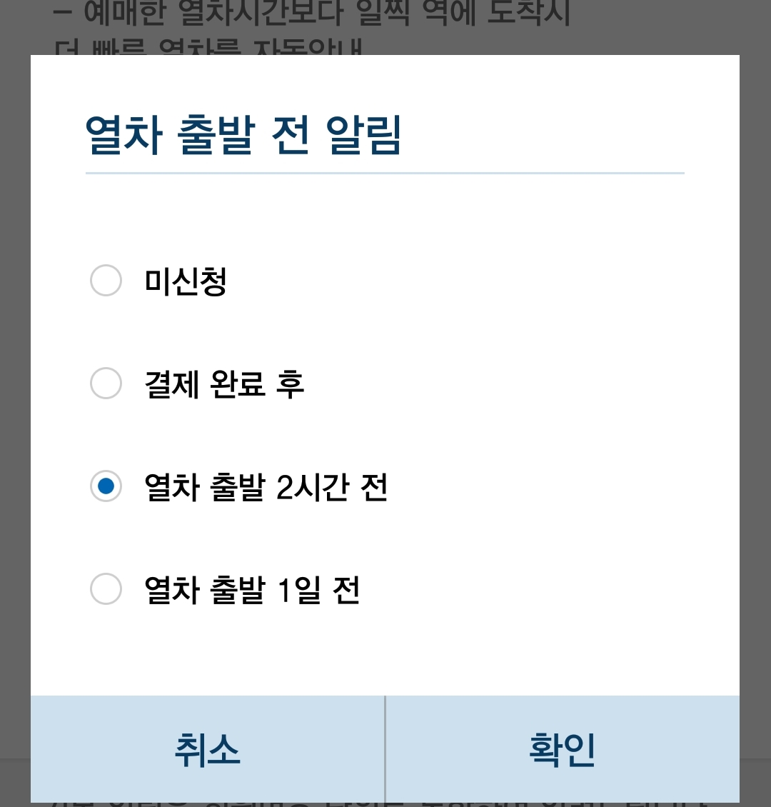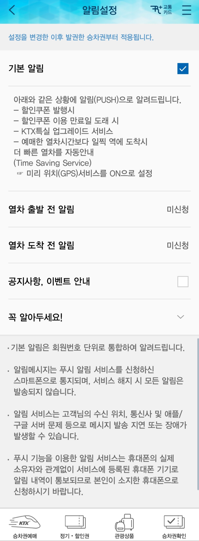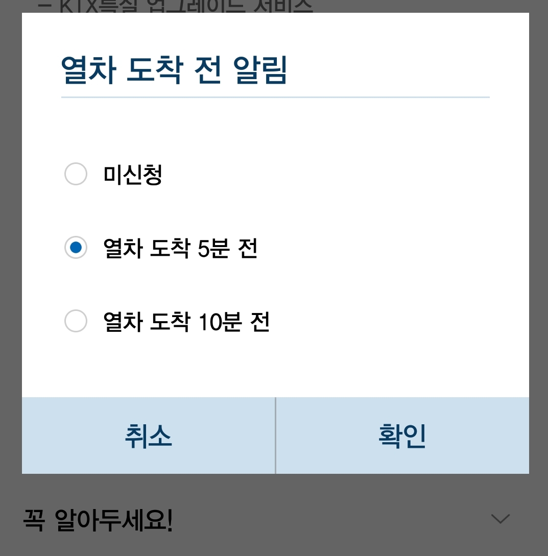 코레일앱의 출발 전, 도착 전 알림(알람)기능 본문