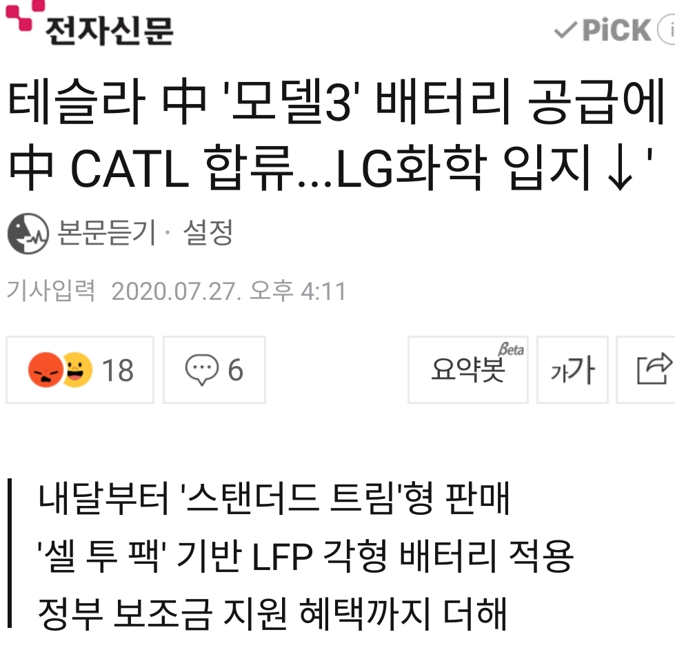 | "최근 테슬라는 LG화학에 '지속 가능한 생산'을 언급하며 배터리 납품전까지 발생하는 탄소 배출량 공유를 요청할 것" (0) | 2020.07.31 |
