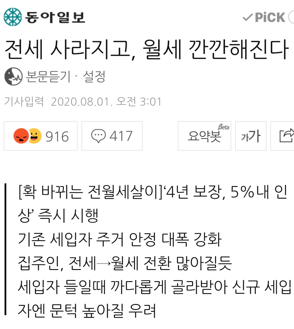 세입자, 4년간 집 걱정 덜지만… 월세가 대세 되면 주거비 오를듯